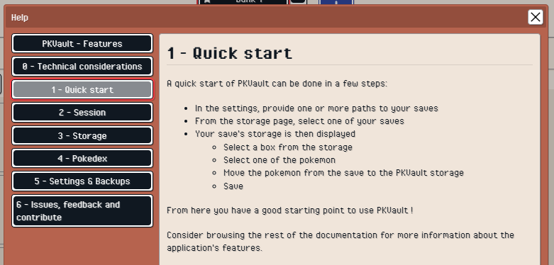 Hi, new release 1.5 (now 1.5.1). PKVault is now available on Linux & SteamDeck ! Checkout Github release for executables. Also multiple fixes related to Docker image, checkout Github README. A feature often asked: an in-app documentation is now present helping for settings, quick-start, and giving information for how the app works. This feature is still raw, may be improved later. New language: German. Update PKHeX to 26.01.31, giving Legends ZA 2.0.1 compatibility. Issue related to sort action is now fixed @zavage00 @WraithTDK this feature is planned. -