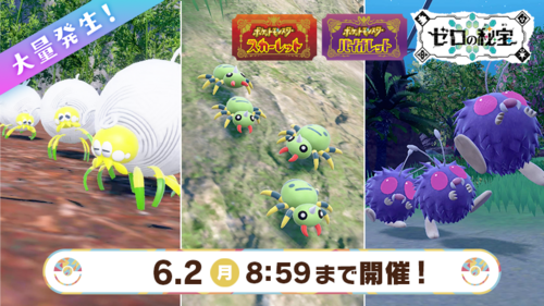 This is an event Mass Outbreak held by Scarlet and Violet, focused on bug-type Pokemon. Notably, with this event players will encounter Tarountula in the Paldea region, Spinarak in the Kitakami region and Venonat in the Blueberry Academy.