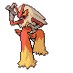Image of 257 Blaziken (Female) from the front used in Pokémon Diamond, Pearl, Platinum, HeartGold, and SoulSilver