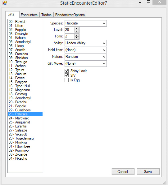 Ultra Moon Static Encounter and Gift Tables
