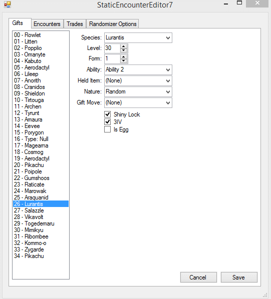 Ultra Moon Static Encounter and Gift Tables
