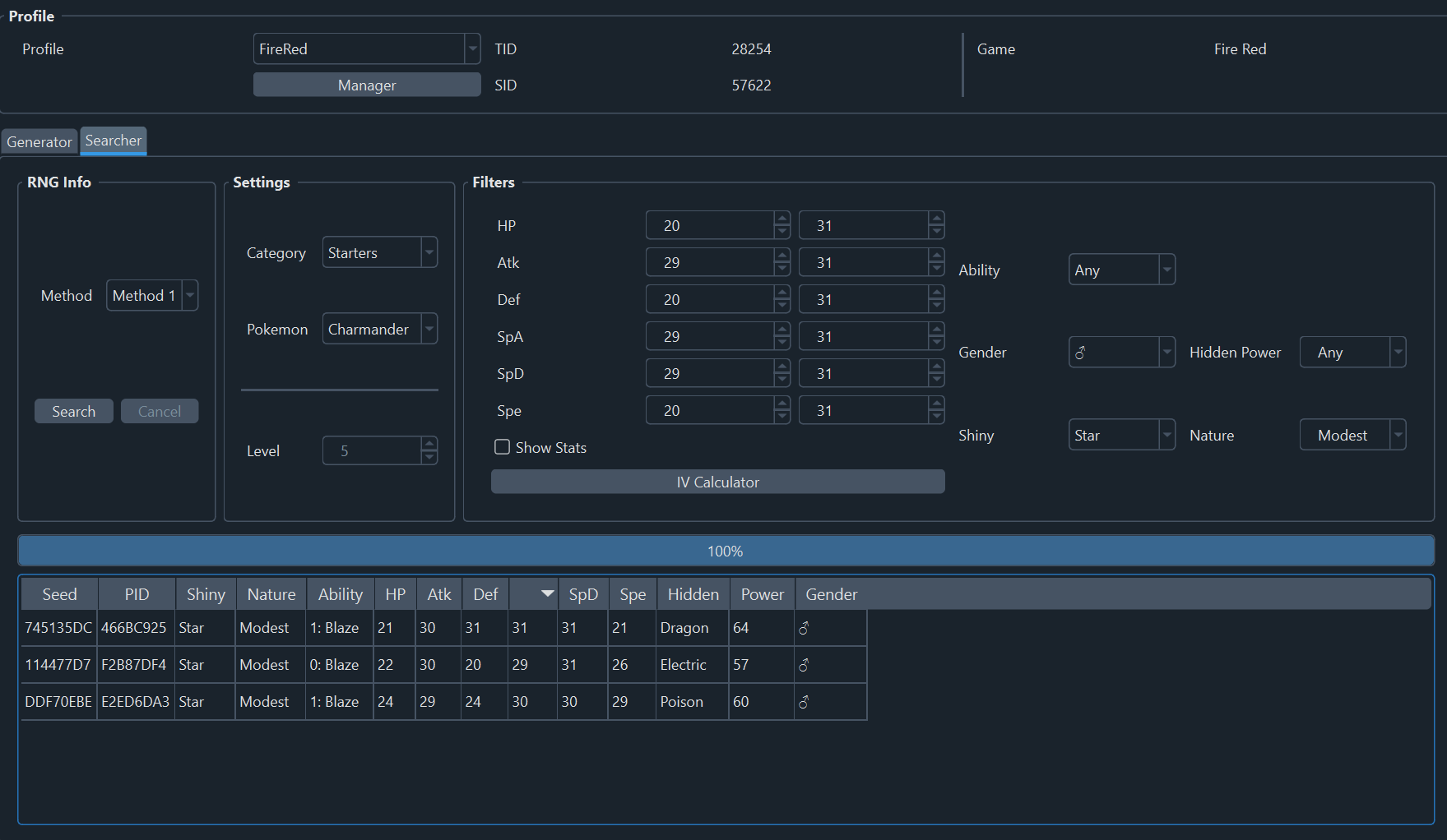 So I was able to create a Shiny Nidoran just fine using PkHex and PokeFinder, yet for the life of me my Charmeleon to be shiny. I'm not sure what I'm doing wrong. (And yes I know he has invalid moves). I am using the first result from PokeFinder.