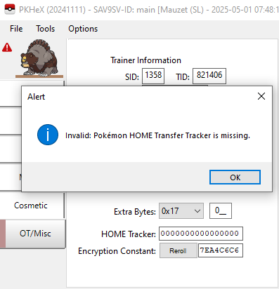 I only put a random number in the HOME tracker because PKHeX was showing a message that it needed a value there, so I just filled it in so the alert would go away. I wasn’t trying to guess any correct number. Also, I checked the encounter database, but Ursaluna (non-Bloodmoon) doesn’t show up there either, so I couldn’t use it like you suggested.