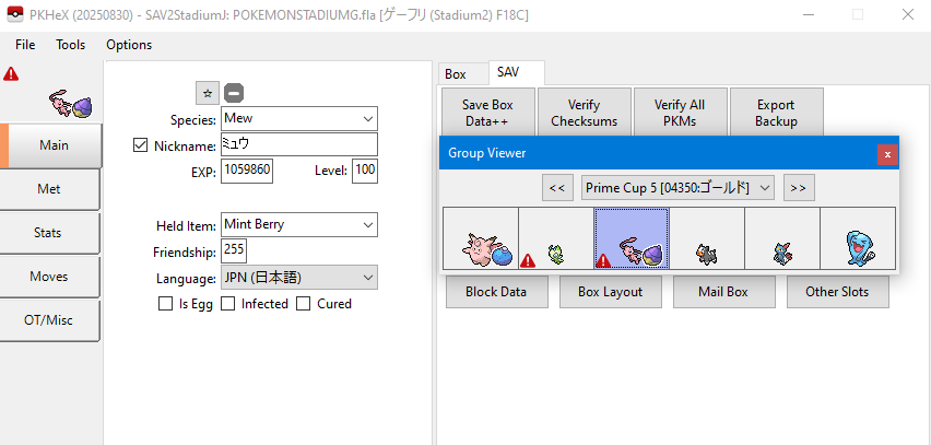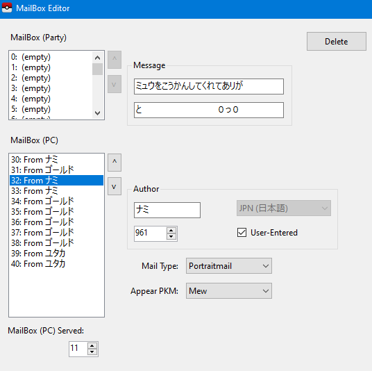 2. I don't know if anyone was interested, I was going through a lot of Japanese Pokémon Stadium Gold & Silvers. In the lot I found a one with a CoroCoro Mew in one of the registered teams. Aside from the Celebi with an OT of ルフィー all other Pokémon seem to be authentic. Some other details that made me think it's a genuine one is in the Mail box where there's a couple letters mentioning Mew, and thanking the person for trading one and another about it's cuteness. Sorry if this is the wrong place to post this.