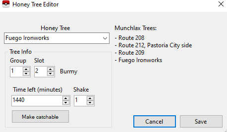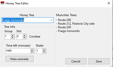 I've been trying to rng a munchlax for some hours now. I've been able to rng legendaries, wild pokemon encounters successfully. I even did the shiny manaphy egg but I can't get the honey tree to work. I followed I'm a blisseys video. First I checked my TID (11900) and SID (11891) on the dragonfly cave website and it says Fuego Ironworks should have a munchlax tree in my game and PKHex also confirms this. I've hit my seed (56100613) correctly to which I confirm with the coin toss app. I've been trying to target frame 71 which has a PID of 3E520276, so hex 0276/656 gives me a vlaue of 0 which should correspond to the munchlax column. I can match up the chatot pitches and stop on the last pitch (70) and then apply the honey but it keeps giving me burmy. I've tired a few times and have also tried stopping on the target frame and also a few above and below but I still get no munchlax. I've also tired it on the frame 71 wild encounter which was a magnemite holding metal coat and it matched up in pkhex so I don't think there's anything wrong with the areabecuase my stndard wild encounters still seem to be working fine, just the tree issue. I also tried a few random frames and those don't work either. So for example the most recent one I tired is frame 76 (02769A2C). So according to that excel spreadsheet with the columns and rows: 9A2C/656= 60 (column 2) 0276/656=0 (row 0). Follwing this logic I should get a heracross on that frame but according to PKHex I got a combee. On the file it says combee is in group 1 and slot 0, I'm not sure if this directly corresponds to the excel spreadsheet. Either way I'm just really confused why the right frame isn't giving me the right pokemon according to what's shown on pokefinder. Any help would be greatly appreciated. Honey Tree Encounter Slots - Sheet1.csv Munchlax tree.csv